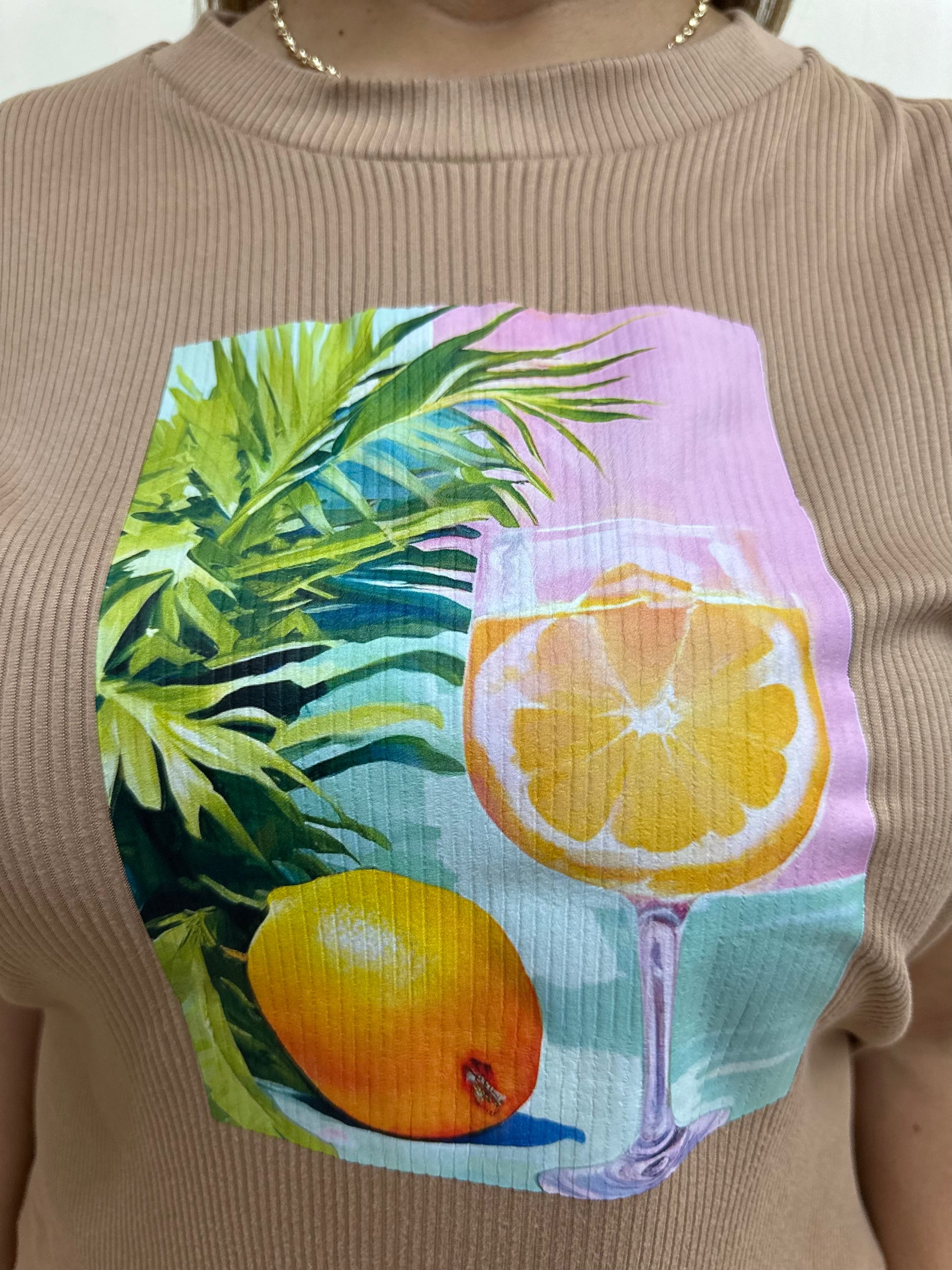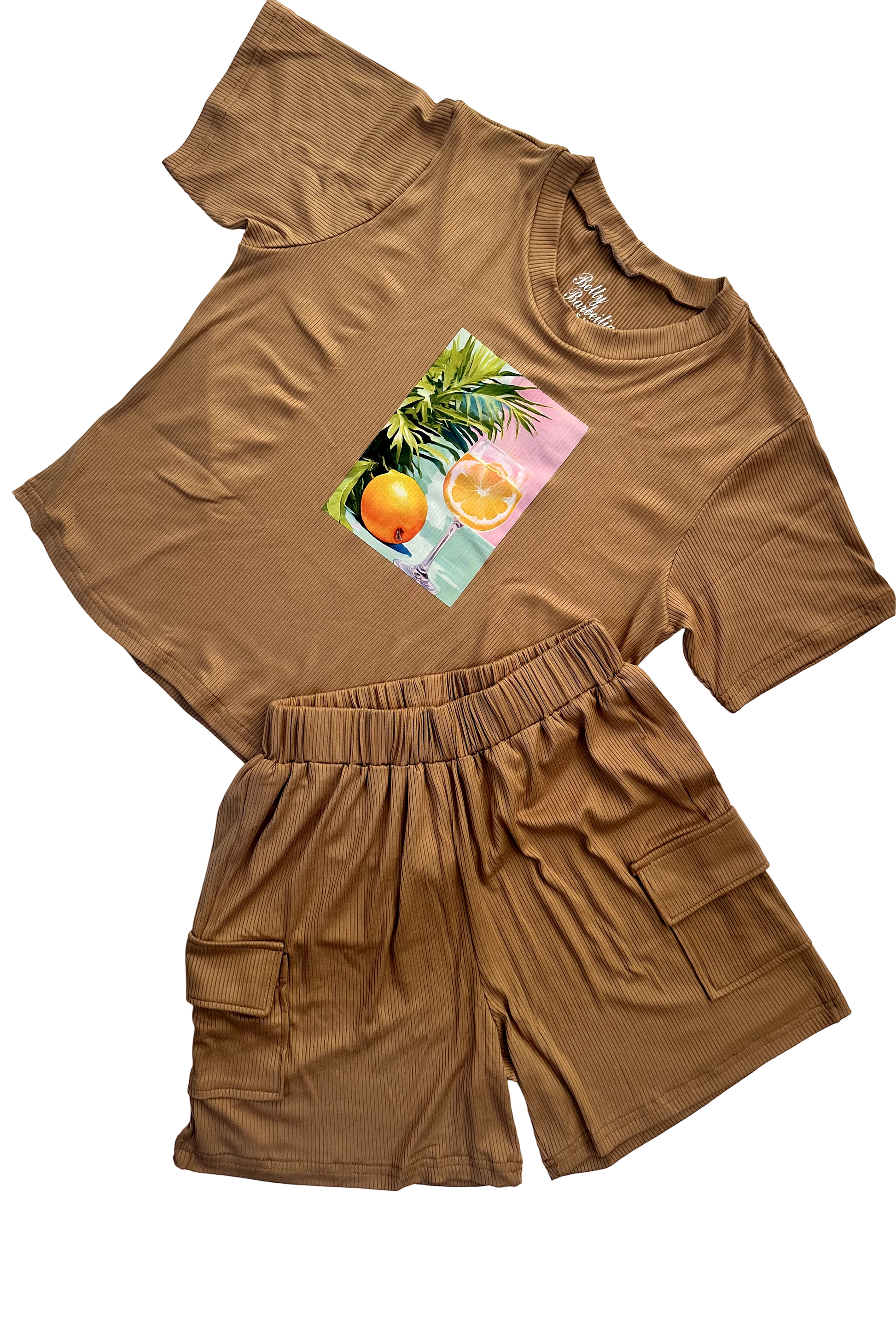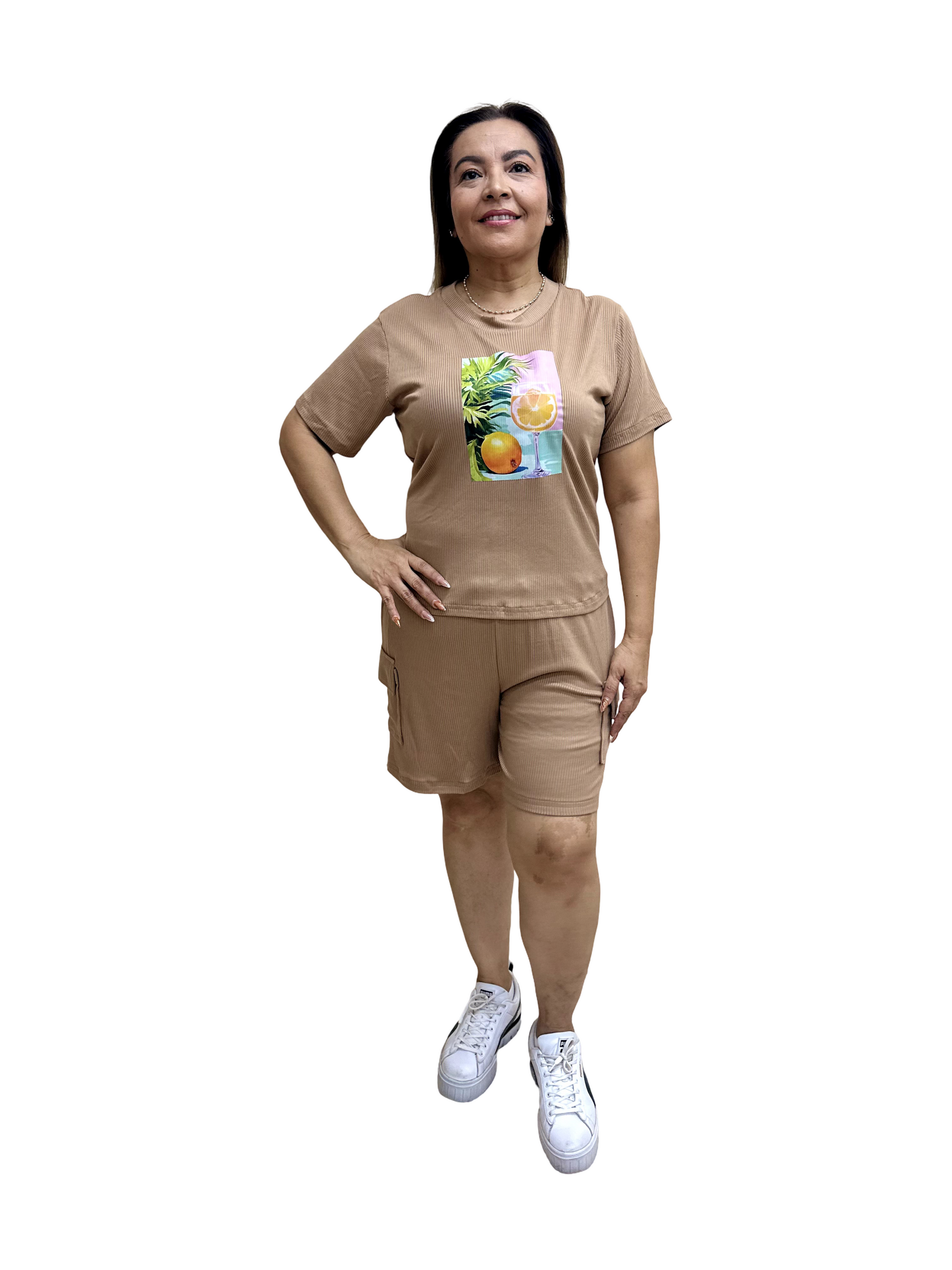 Conjunto Tropical Capuchino – Blusa y Shorts