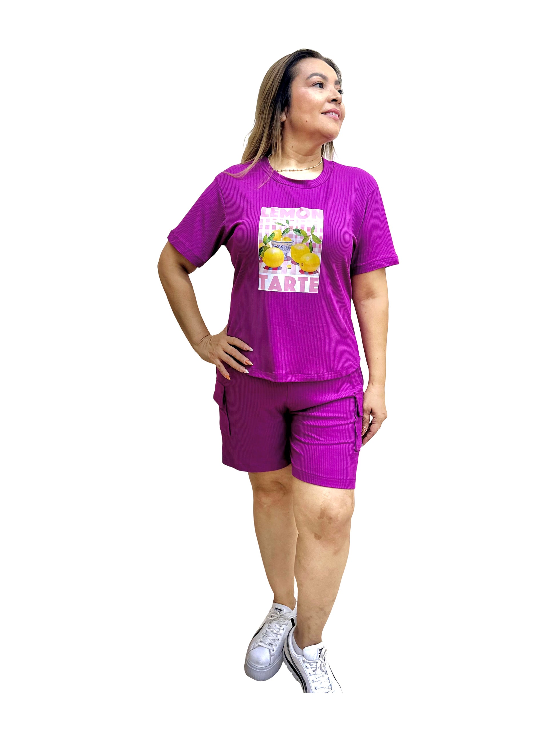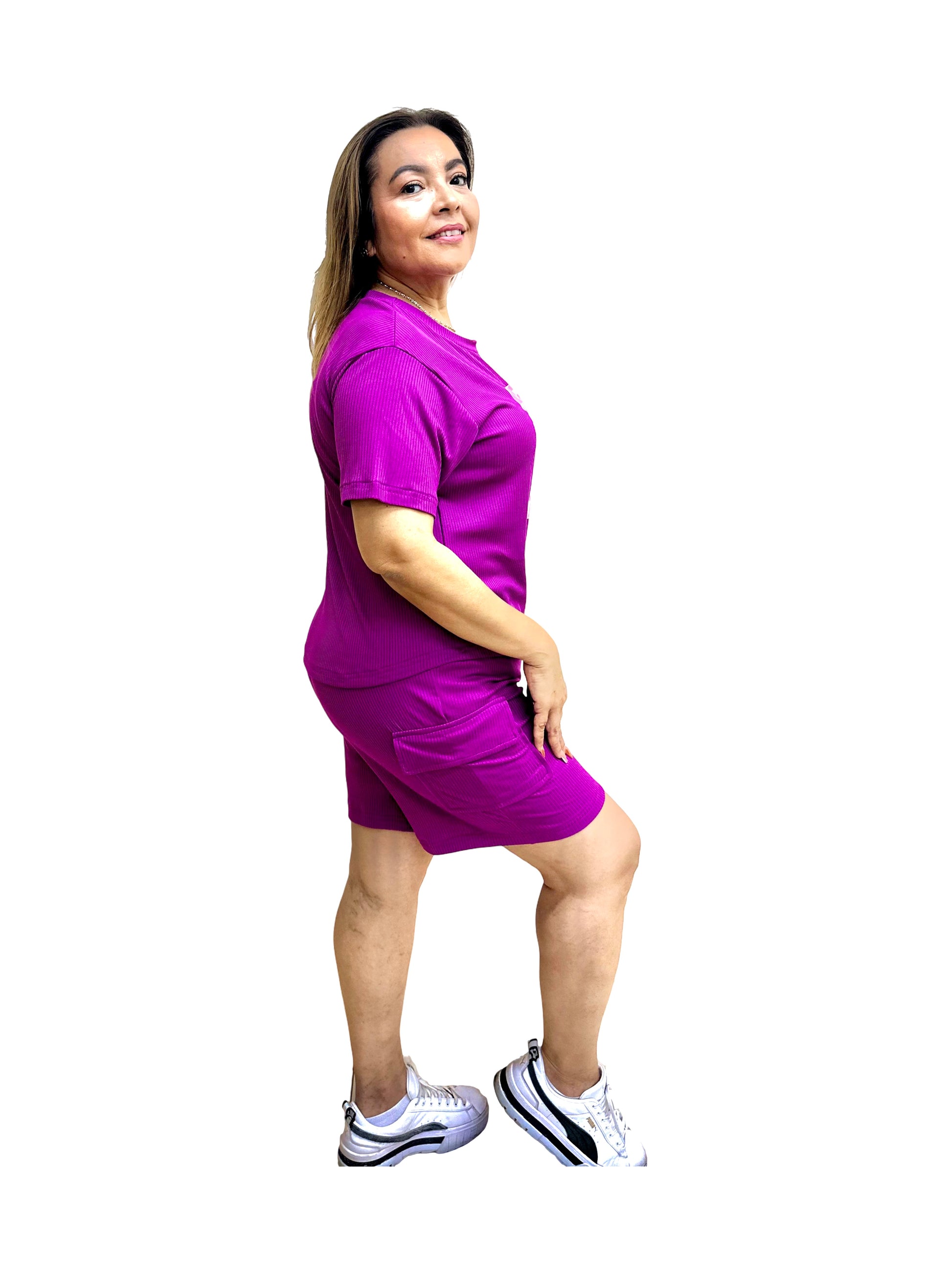 Luce fresca y radiante con este conjunto acanalado, ideal para primavera-verano. Hecho con 90% algodón y 10% poliéster, se adapta a tu cuerpo con suavidad y estilo. Perfecto para días soleados y looks sin esfuerzo.